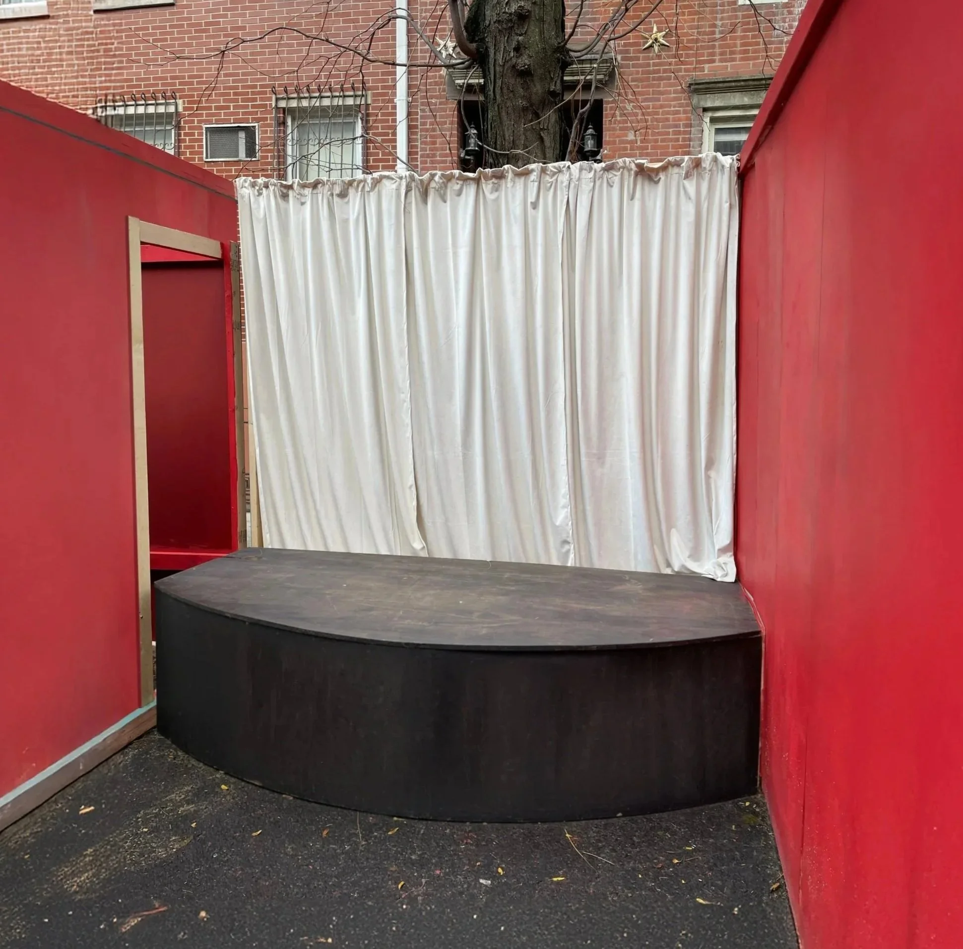 For one night only, if you walked down 7th St in the East Village, you would have found a room with two hallways in the middle of the road. With no neutral positions available, viewers had to be seen or watch. Some performed, sharing poems, songs, or stories, while others hovered below, waiting for someone else to assume responsibility. Many turned away once they realized the stage demanded something of them. Others would evade the entrance and exit strategy entirely by hoisting themselves on to the stage, interrupting performances because they believed they had something greater to say. The structure guided the behavior and revealed how quickly people can negotiate a platform.